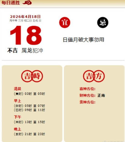 易学董老师:2026年4月18日 每日通胜+今日生肖红黑榜