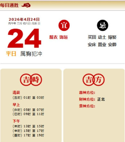易学董老师:2026年4月24日 每日通胜+今日生肖红黑榜