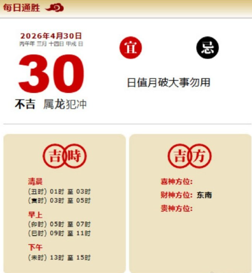 易学董老师:2026年4月30日 每日通胜+今日生肖红黑榜