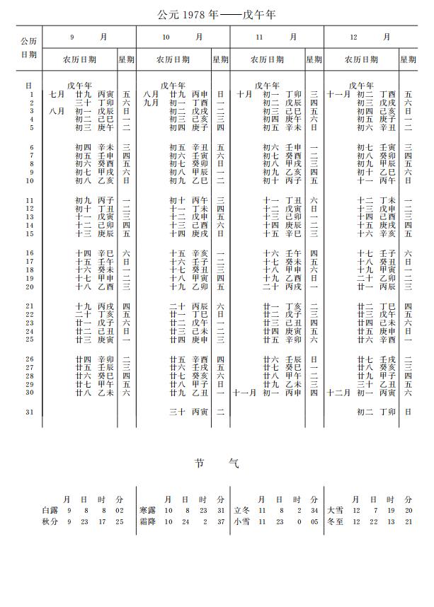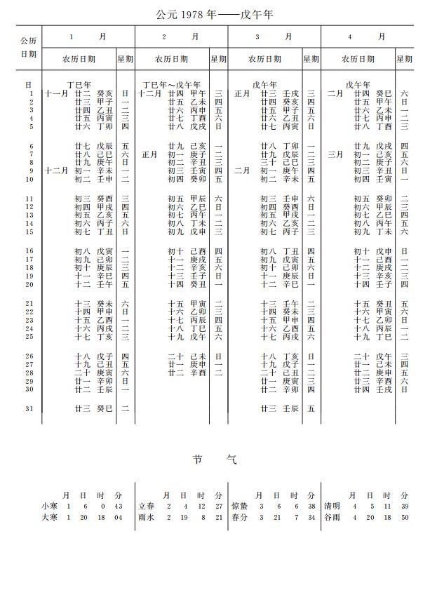 紫金山天文台万年历1978年电子版,新编万年历之1978年(戊午马年)