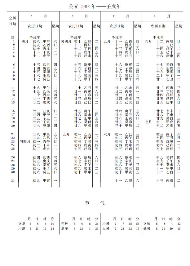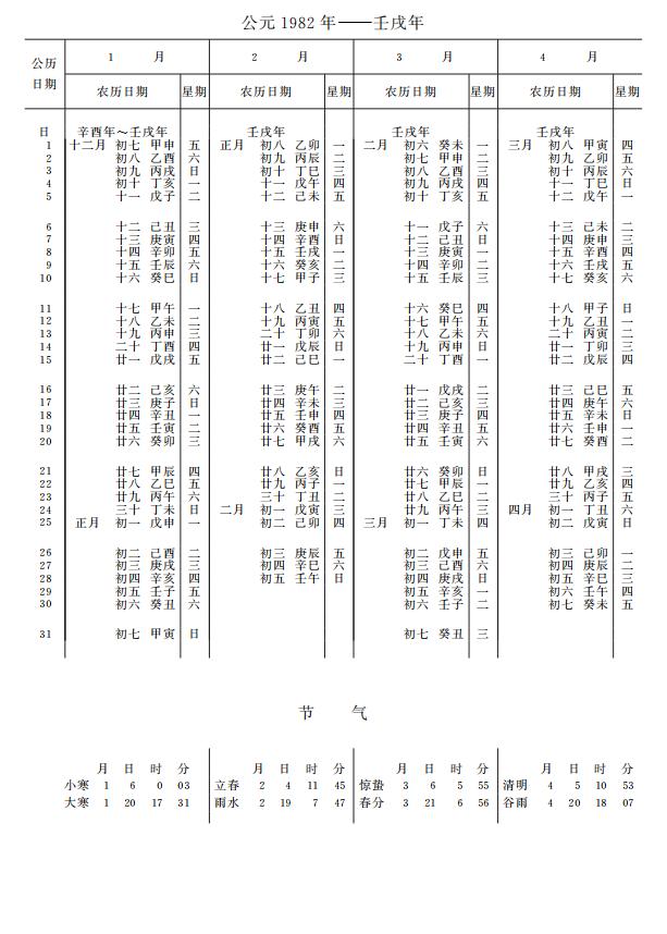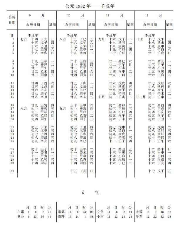 紫金山天文台万年历1982年电子版,新编万年历之1982年(壬戌狗年)