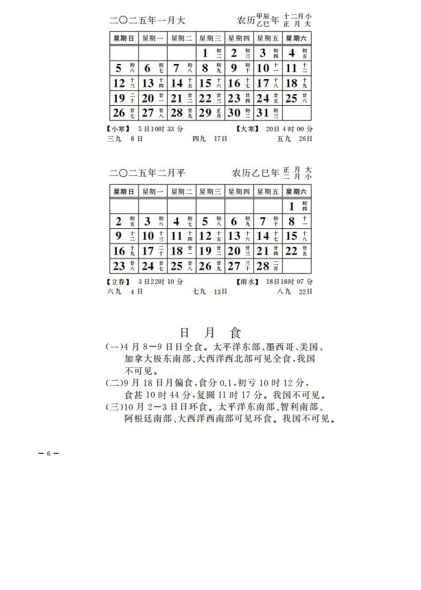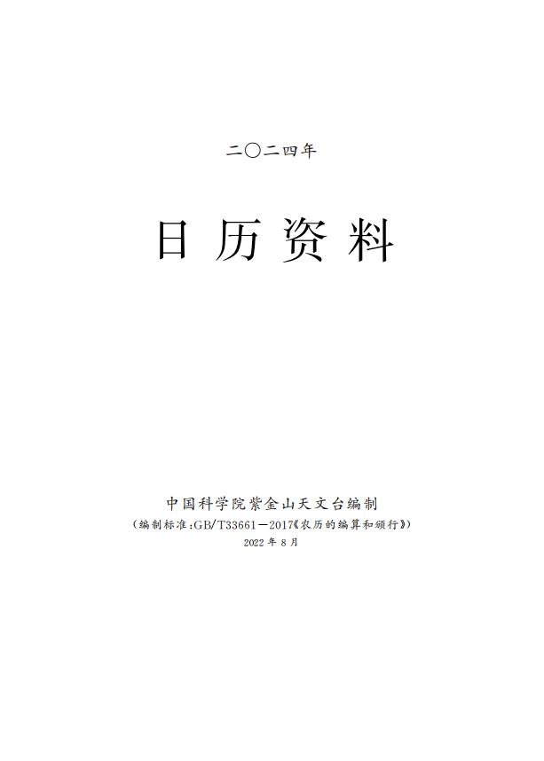 4. 新中国成立后,中国科学院紫金山天文台承担国家历书编算工作。本历表依据的编算模型遵循国家标准《农历的编算和颁行》。