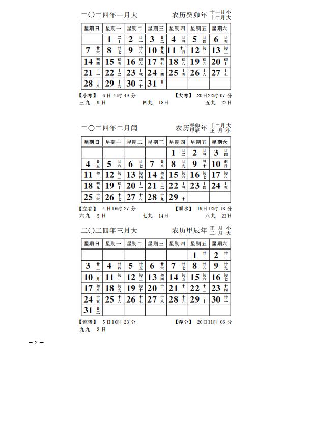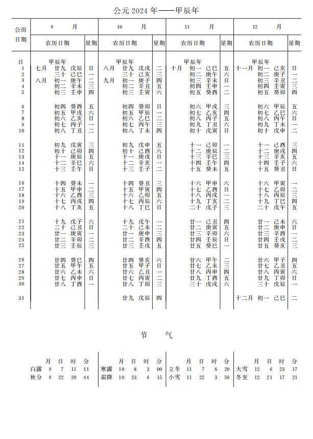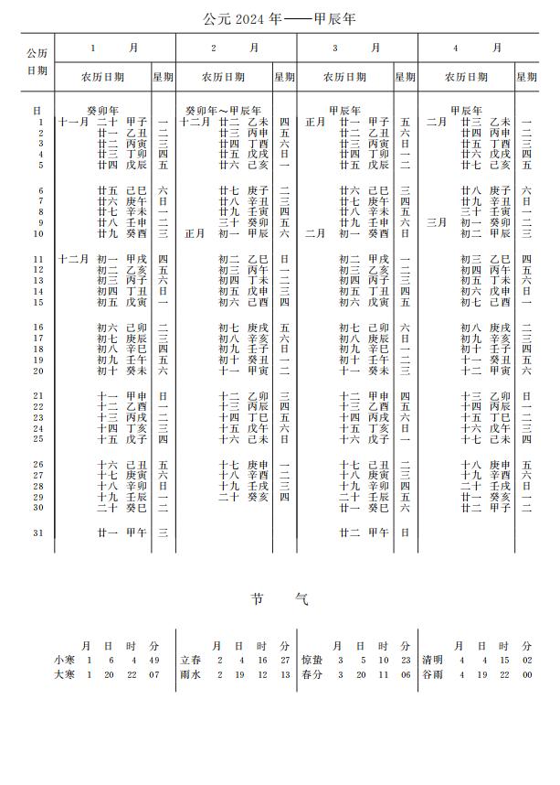 紫金山天文台万年历2024年电子版,新编万年历之2024年(甲辰龙年)