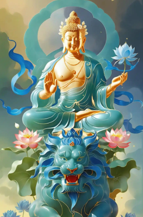文殊菩萨,梵名Mañjuśrī,是佛教中象征智慧、辩才与觉醒的菩萨。在经典中,文殊菩萨手持智慧之剑,斩断无明烦恼,以狮子为坐骑,代表智慧威猛无畏。对于属兔之人而言,其天性温和、心思细腻,善于观察与学习,但有时也可能因过于谨慎或优柔寡断而错失良机。文殊菩萨的守护,能为其注入决断的智慧与心灵的勇气,使属兔之人在人生的道路上既保持柔和谦逊,又不失时机地展现才华。