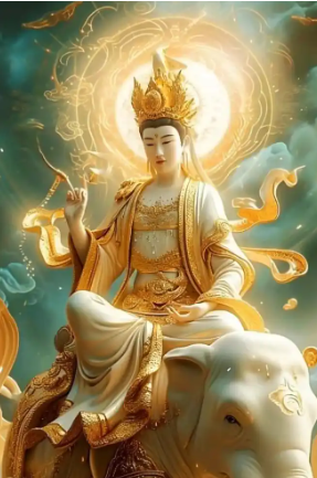 普贤菩萨,梵名Samantabhadra,是佛教中象征理德、行德的菩萨,代表大乘佛教的实践精神。在经典中,普贤菩萨以六牙白象为坐骑,象征愿行广大、功德圆满。对于属蛇之人而言,其天性敏锐,直觉强大,善于思考与观察,但有时也可能因过于谨慎或多疑而错失良机。普贤菩萨的守护,能为其带来行动的勇气与持久的毅力,使属蛇之人在人生的道路上既能保持深谋远虑,又能勇于实践。