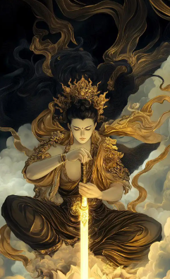 不动尊菩萨的形象通常威严庄重,右手持智慧剑,左手持金刚索,象征着以智慧斩断烦恼,以慈悲束缚魔障。这一形象蕴含着"慈悲与智慧不二"的深刻佛法寓意——在坚定的修行中体现慈悲,在智慧的运用中展现力量。不动尊菩萨的威德之力,恰能呼应属鸡者渴望在勤奋中见成效、在执着中得解脱的深层需求。