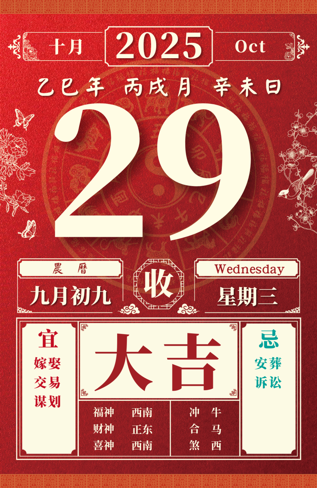 旺运方位:此日利于朝东方出行;西南方不宜。