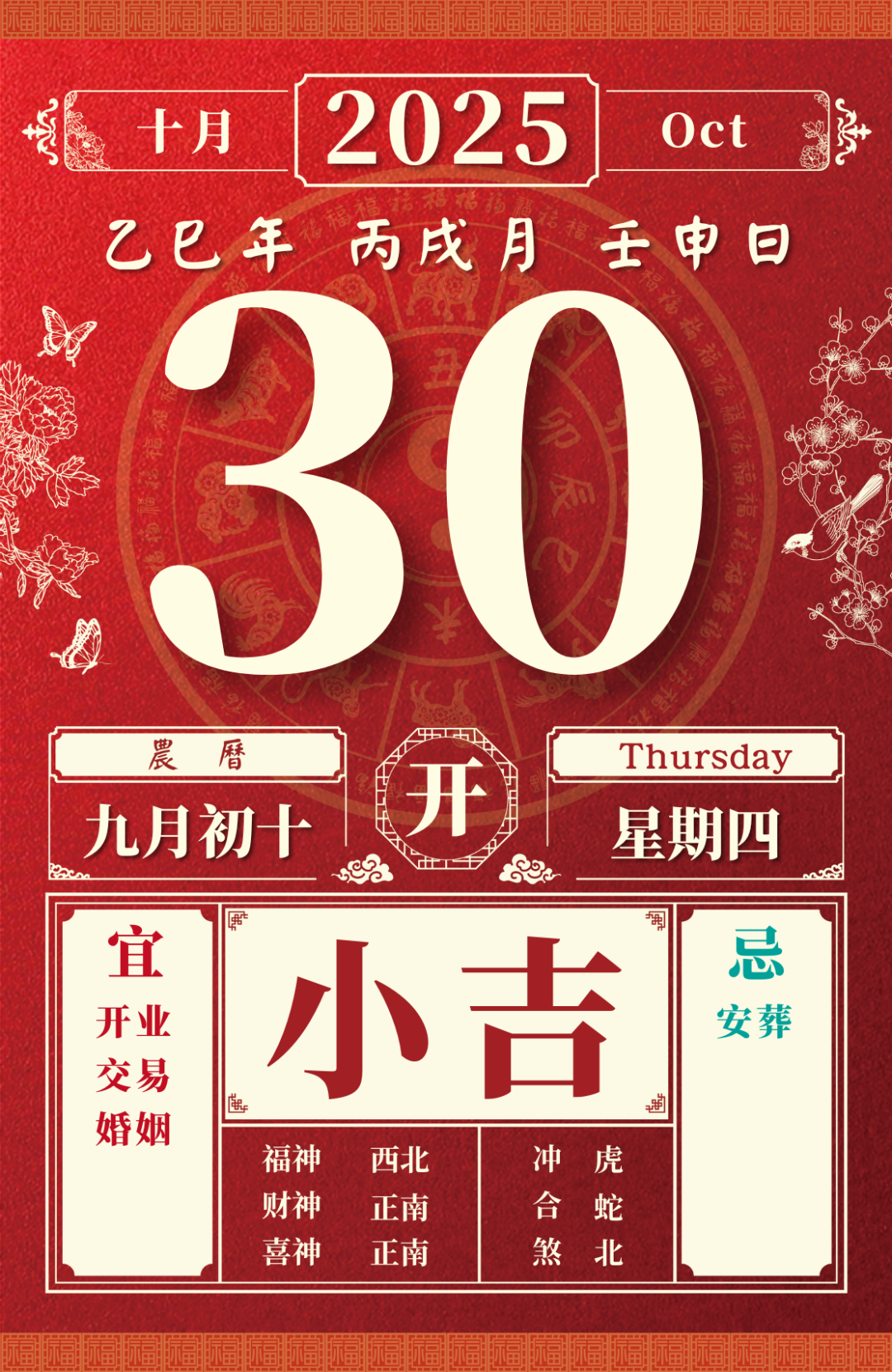 旺运方位:此日利于朝西方出行;东北方不宜。