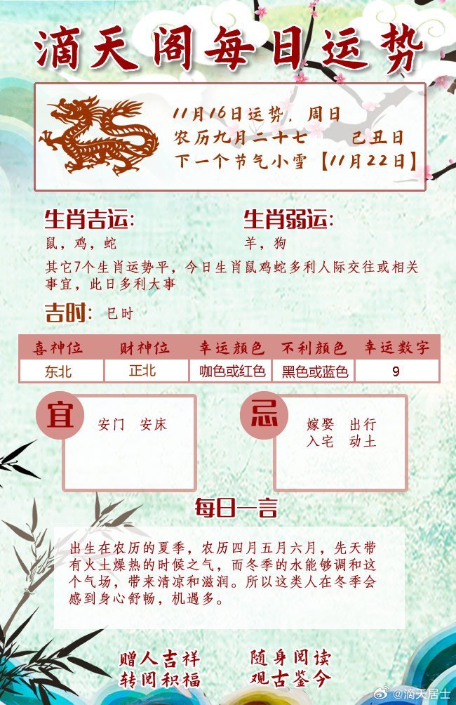 滴天居士每周生肖运势(11.10-11.16)