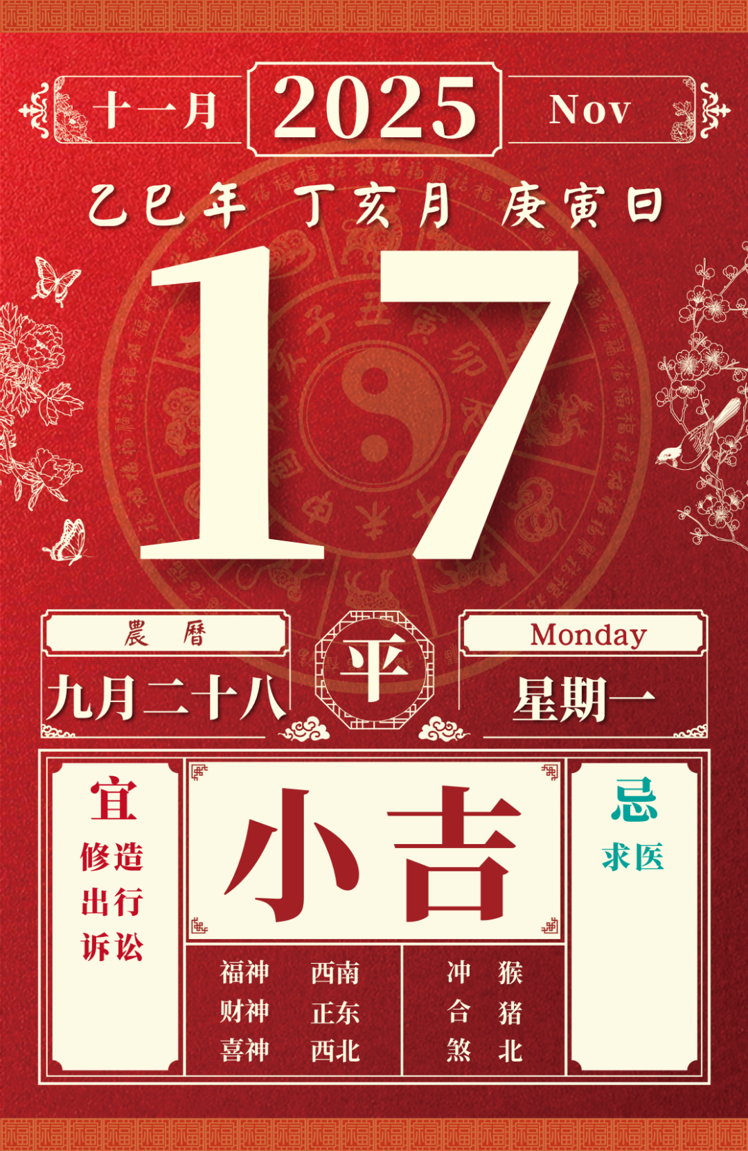 旺运方位:此日利于朝南方出行;西北方不宜。