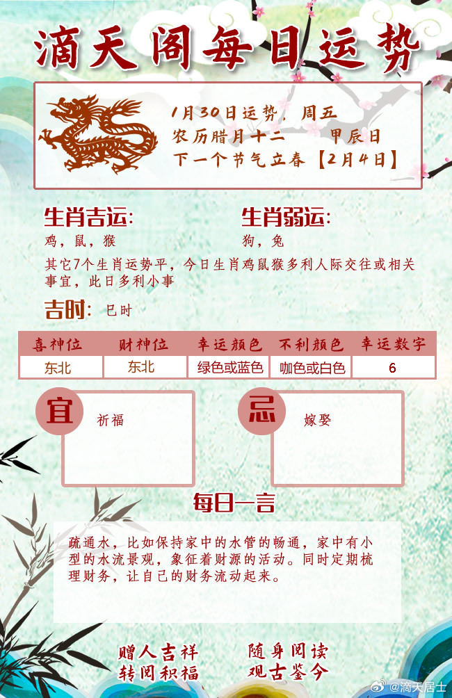滴天居士2026年1月30日生肖运势