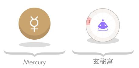 这个宫位的行星往往缺乏明确界限。水星在此引发的核心问题是:思考的主体究竟是谁?他们容易吸收周遭的思想波动,以致难以区分自我与他人的想法。这种特质使部分水星十二宫者极度恐惧精神失控,反而表现出过度理性的倾向,只认可经实证检验的事物。虽然他们习惯隐藏真实想法,但只要水星相位不差,通常都具备敏锐的直觉、生动的想象力和特殊的智慧汲取能力。