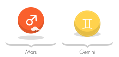 火星落在双子座的人,天生心智活跃,善于运用思维与语言作为行动工具。他们具备敏锐的观察力与强烈的好奇心,喜欢追根究底,探究事物背后的原理。这类人反应迅速,机警灵活,但也容易因外界信息的变化而显得不安与易激动。他们必须学会集中注意力,否则容易陷入多头并进却难以深入的困境。