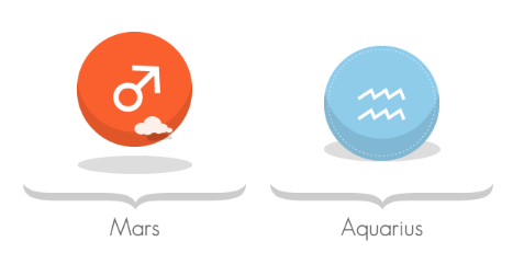 当火星位于水瓶座但相位不佳时,个体可能表现出强烈的推翻现有秩序的欲望,而非致力于改进现有体系。许多革命家都具有这样的星盘配置,这些个体需要学习在团体中与同伴和谐相处的艺术。