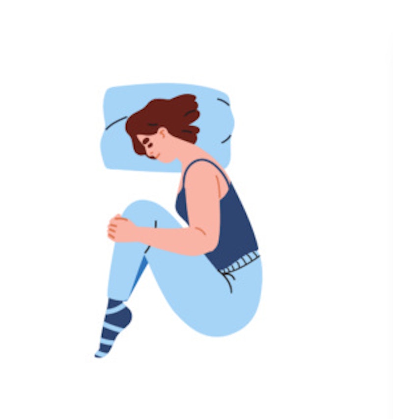 胎儿睡姿的名字来源于婴儿在子宫中的形状。在胎儿睡姿中,睡者的身体基本上蜷缩成一个球,他们侧躺,双腿和双臂弯曲。这种姿势在成人睡眠者中很常见,研究显示,平均60%以上的成人大部分时间都是侧躺的。年龄越大和体质量指数越高与更多的侧睡都有关。