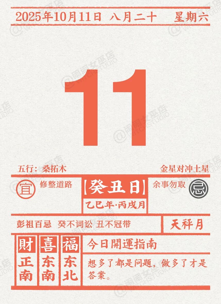 闹闹女巫店今日运势2025年10月11日