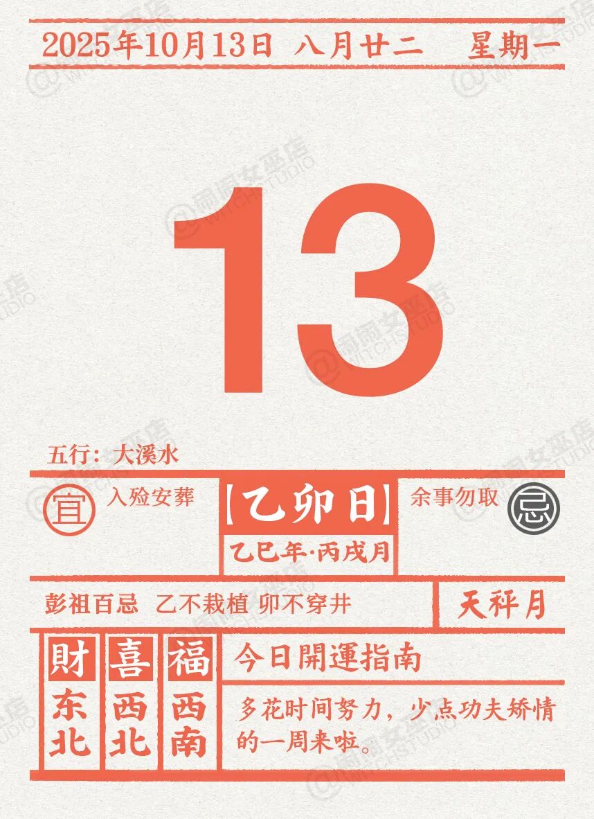 闹闹女巫店今日运势2025年10月13日