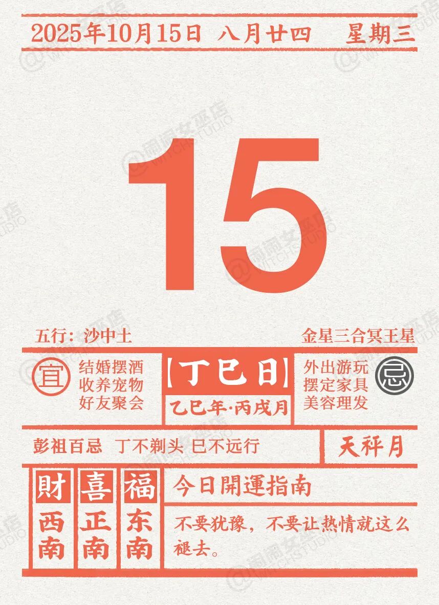 今天有率性而为的倾向,容易让人产生不必要的误会,需要在行为上多加约束。像是明明与你无关的事却硬要插上一脚,或是别人说话途中忽然插嘴等行为,小心会引人反感。今天你的指导能力也可能遭到质疑,可以多请教一下前辈们的意见,他们的建议还颇能切中核心的。