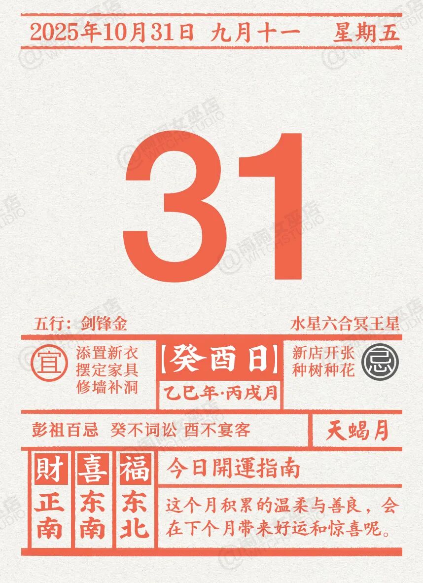 闹闹女巫店今日运势2025年10月31日