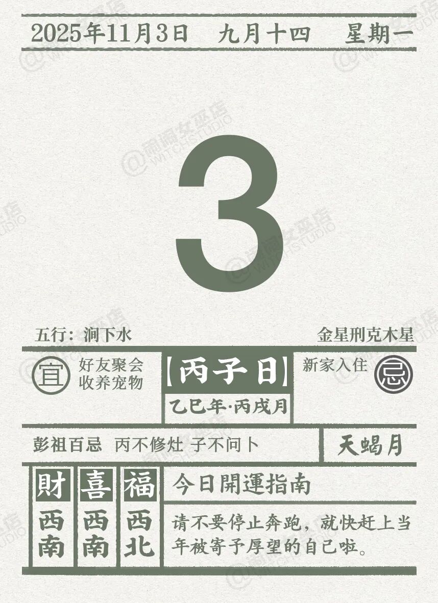 闹闹女巫店今日运势2025年11月3日