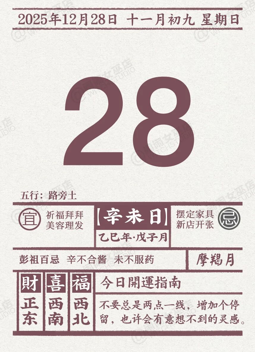 闹闹女巫店今日运势2025年12月28日