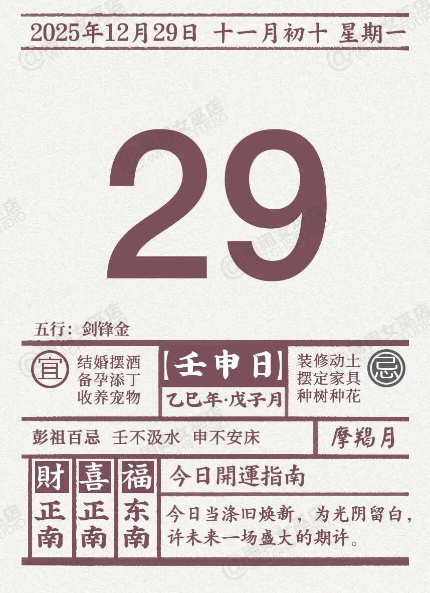 闹闹女巫店今日运势2025年12月29日