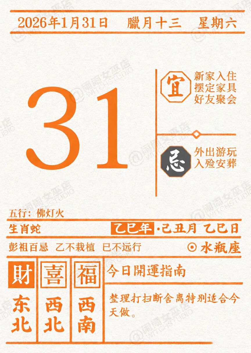 闹闹女巫店今日运势2026年1月31日