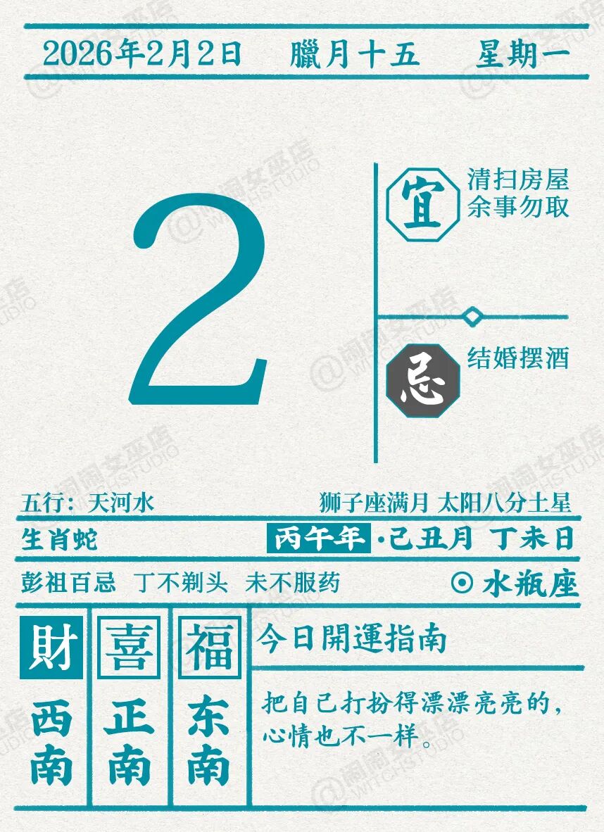 Ezoey徐佩玲每日星座运势2026年2月2日