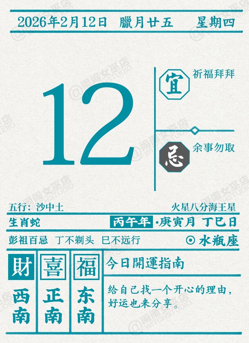 闹闹女巫店今日运势2026年2月12日