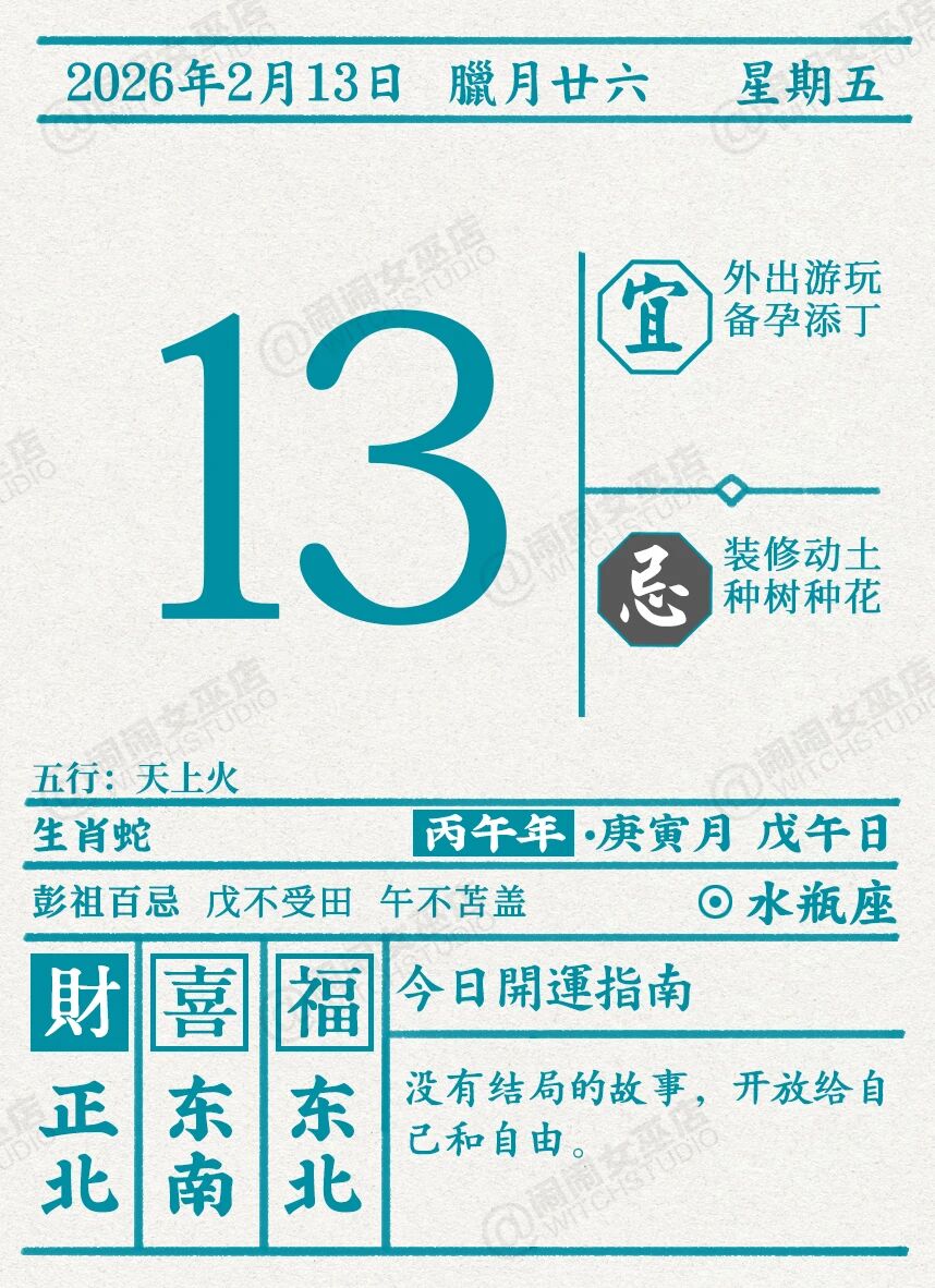 闹闹女巫店今日运势2026年2月13日