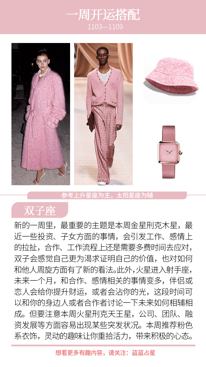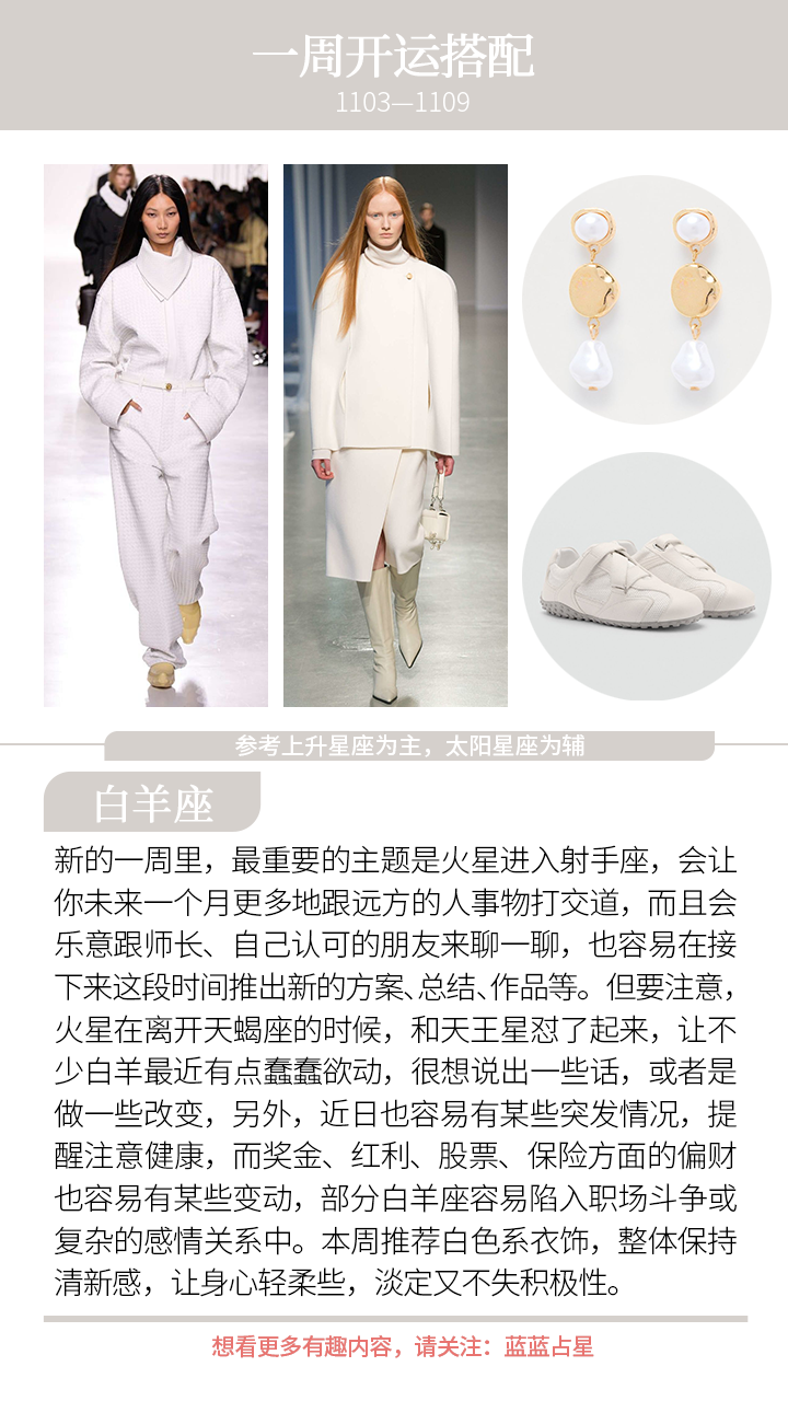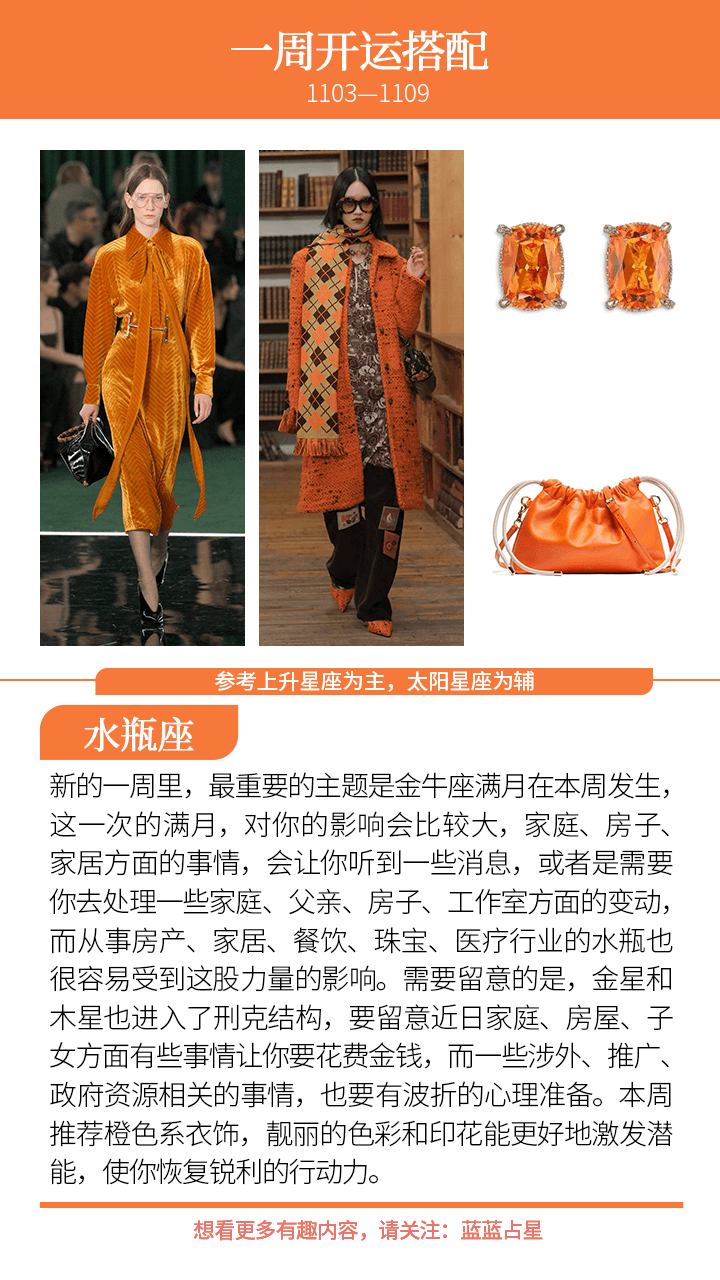 (上升星座或太阳星座)天蝎、白羊、狮子会听到一些突发消息,或者有些临时的情况要处理,也要提醒你们注意健康。新的一周也许会很想快速处理好所有事情,但慢点来,看清楚,反而更有效率。