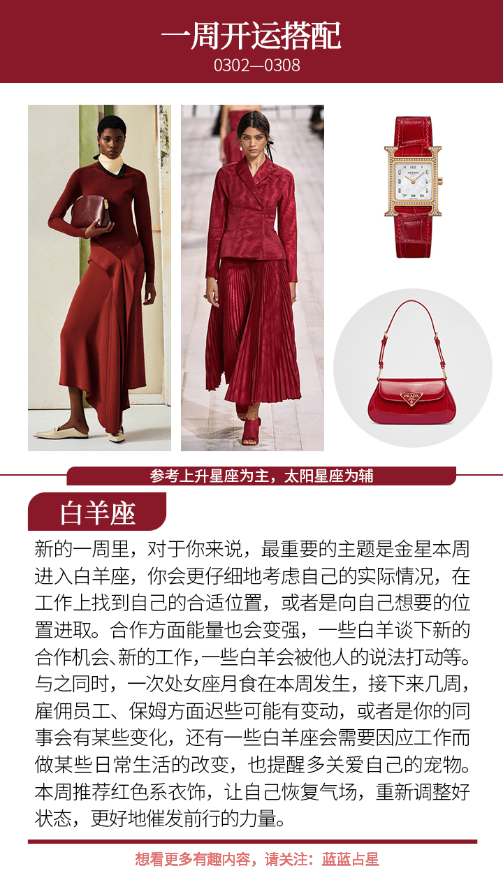 此外,金星进入白羊座,(上升星座或太阳星座)白羊可以在3月好好体会金星带来合作、感情、钱财的推动作用,其他星座要沾“小贵人”的光,3月抓紧时间请白羊吃喝逛街玩耍吧!