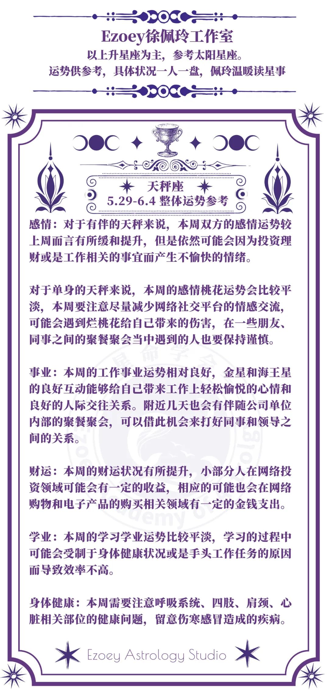 Ezoey徐佩玲一周星座运势(5.29-6.4)